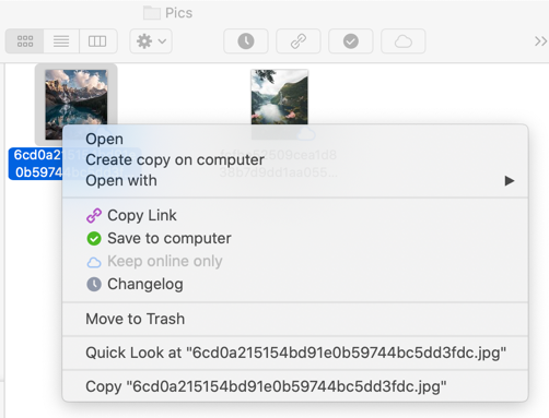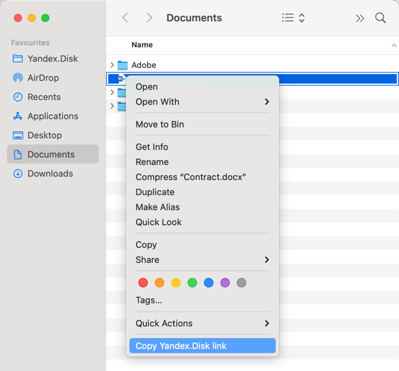Right-click the file and select Copy Yandex.Disk link from the context menu.