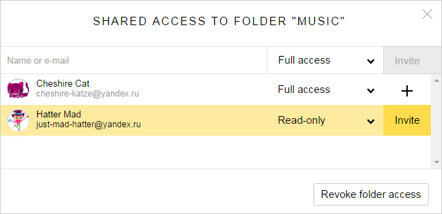 You can see the list of folders that you have granted or gained access to on the Shared folders page. Each shared folder is marked with the
