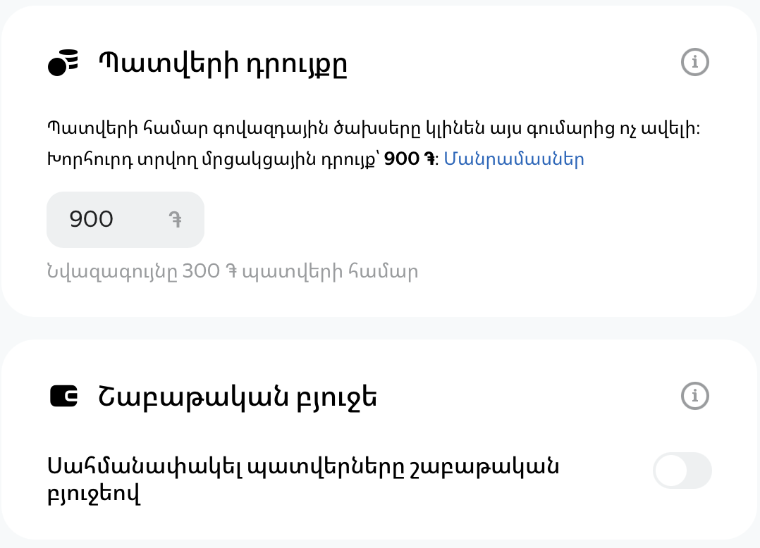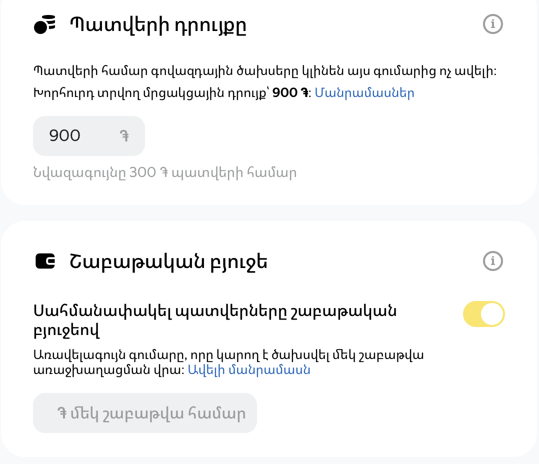 Մեկ պատվերի դրույք բաժնում ակտիվացրեք Սահմանափակել շաբաթական բյուջեով պատվերները։