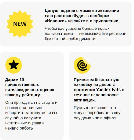 - Закажите наклейку Yandex Eats на дверь по ссылке — доставим в течение 7 дней после активации ресторана.