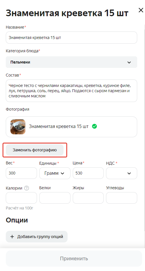 Блюдо лучше поставить в центр кадра, но не делать его слишком крупным. Фото в приложении обрезаются до 15% справа и слева, до 20% сверху и снизу — это нужно учесть, чтобы ничего важного не оказалось за кадром.