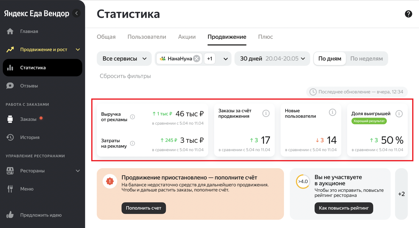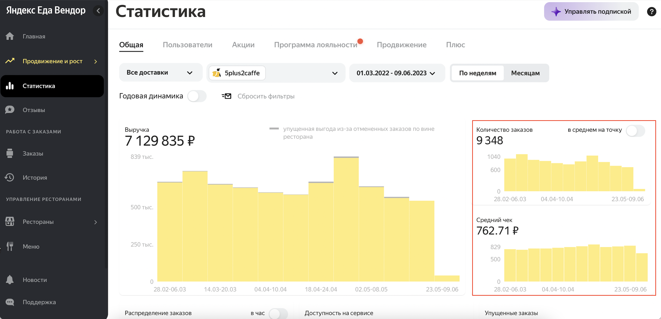 Получить консультацию с анализом показателей ресторана можно у личного менеджера — он доступен с подпиской Бизнес. Подробнее об этом в статье Подписка для ресторанов.