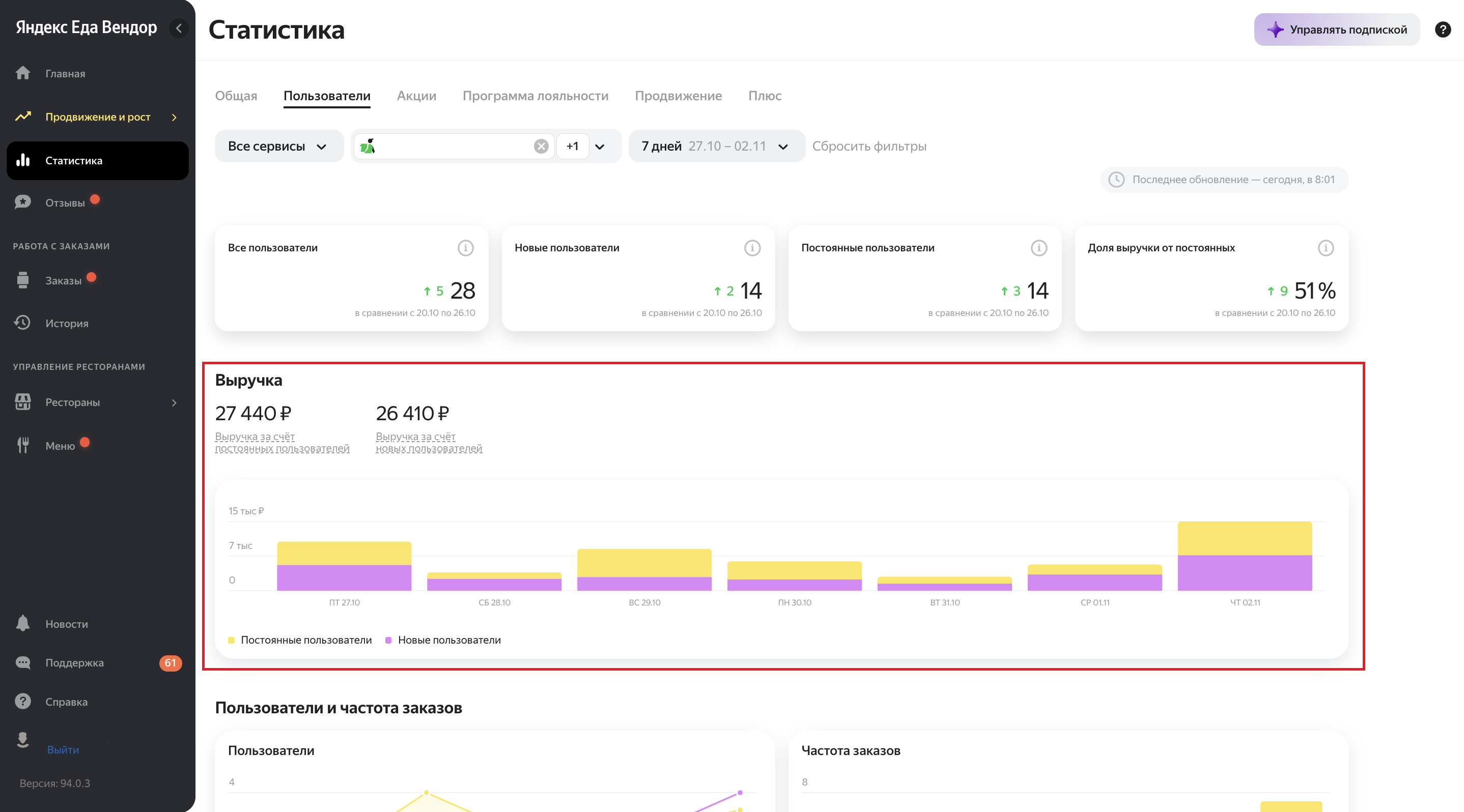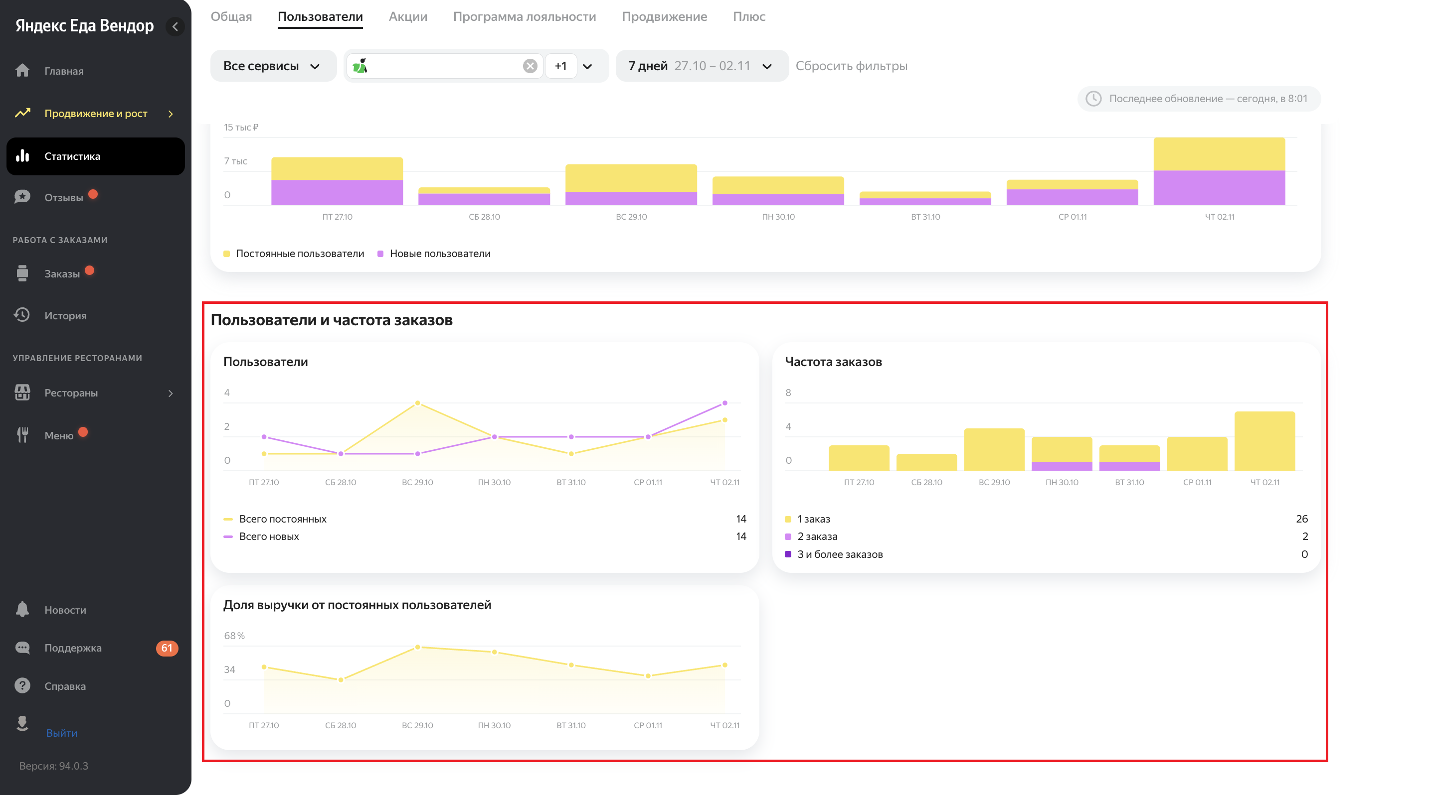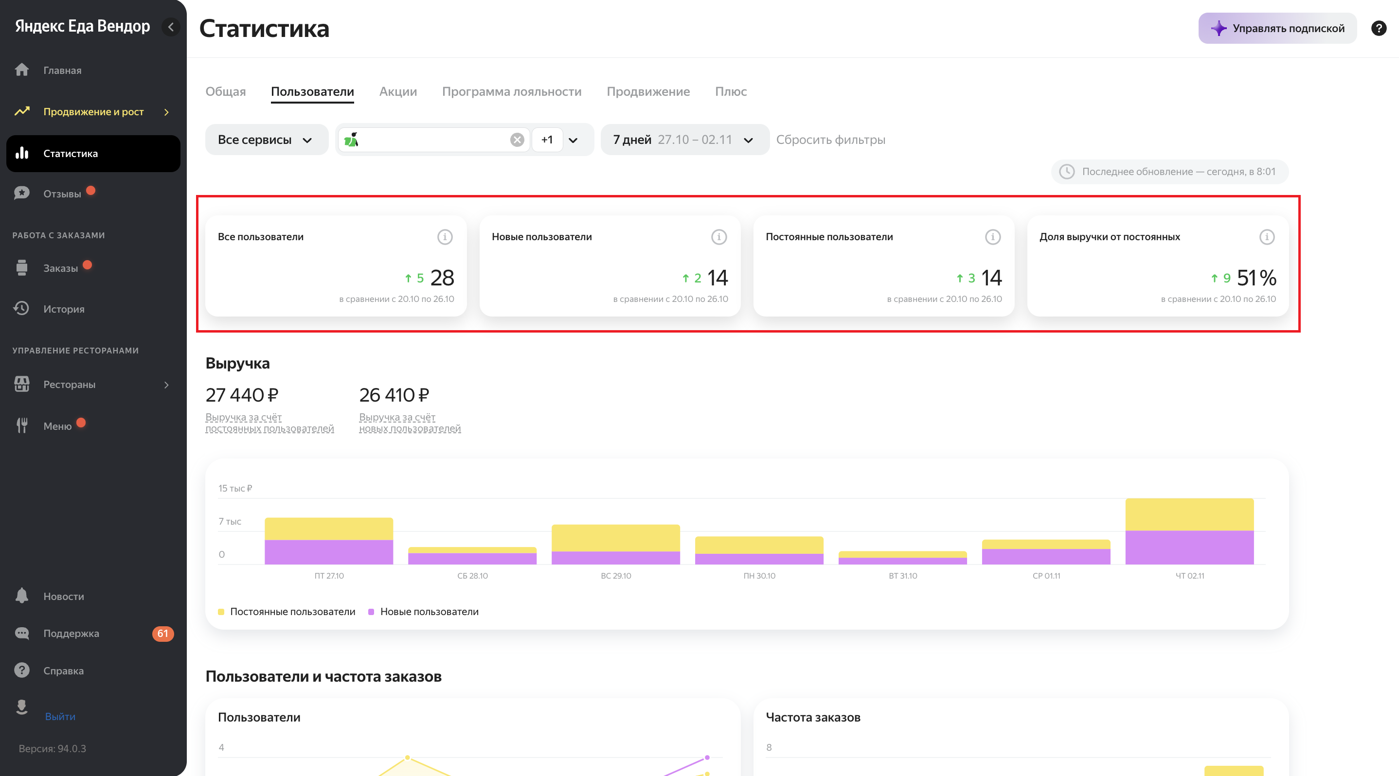 Новые пользователи — количество пользователей, которые впервые сделали заказ в вашем ресторане: с Плюсом и без.