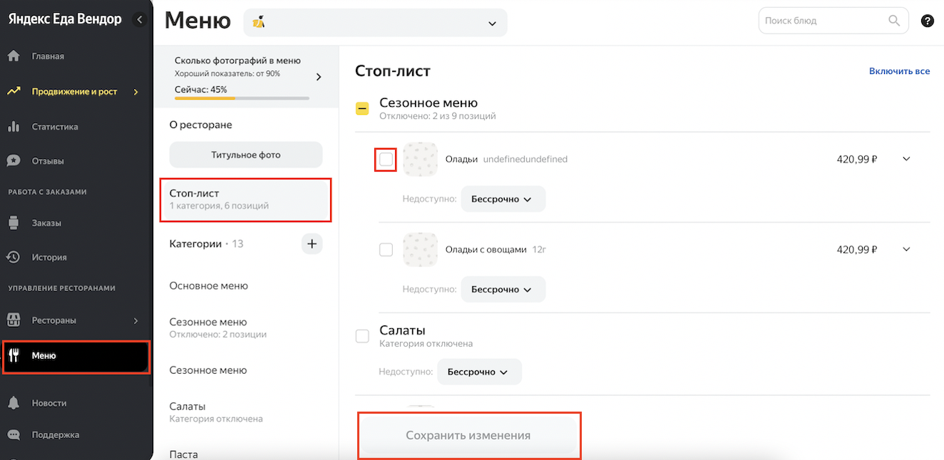 • Блюда:image/svg+xmldotsdotsCreated with Sketch.Редактировать → обновите данные → Применить.