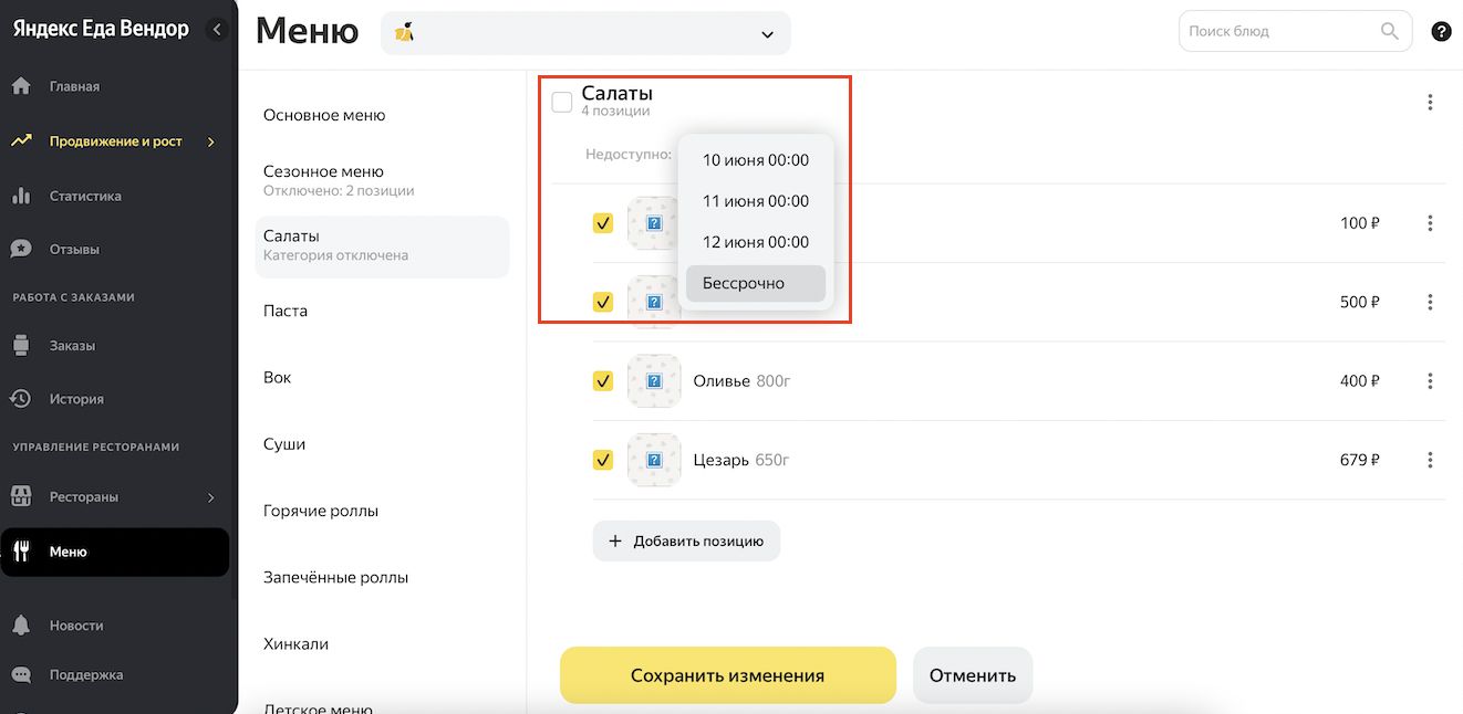 • Для партнеров Яндекс Еды: единое меню для Яндекс Еды и Деливери.