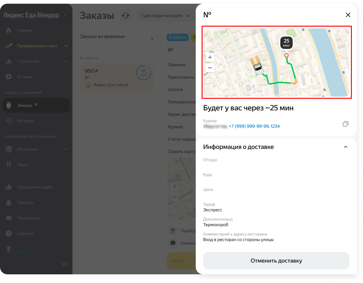 - Которым важно знать статус заказа. Они могут следить за курьером по карте и позвонить ему.
