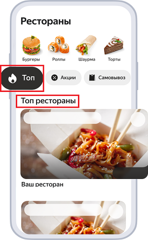 Первые в выдаче — рестораны, которые находятся на первых 10 местах в списке, но их популярные блюда могут отличаться от ваших.