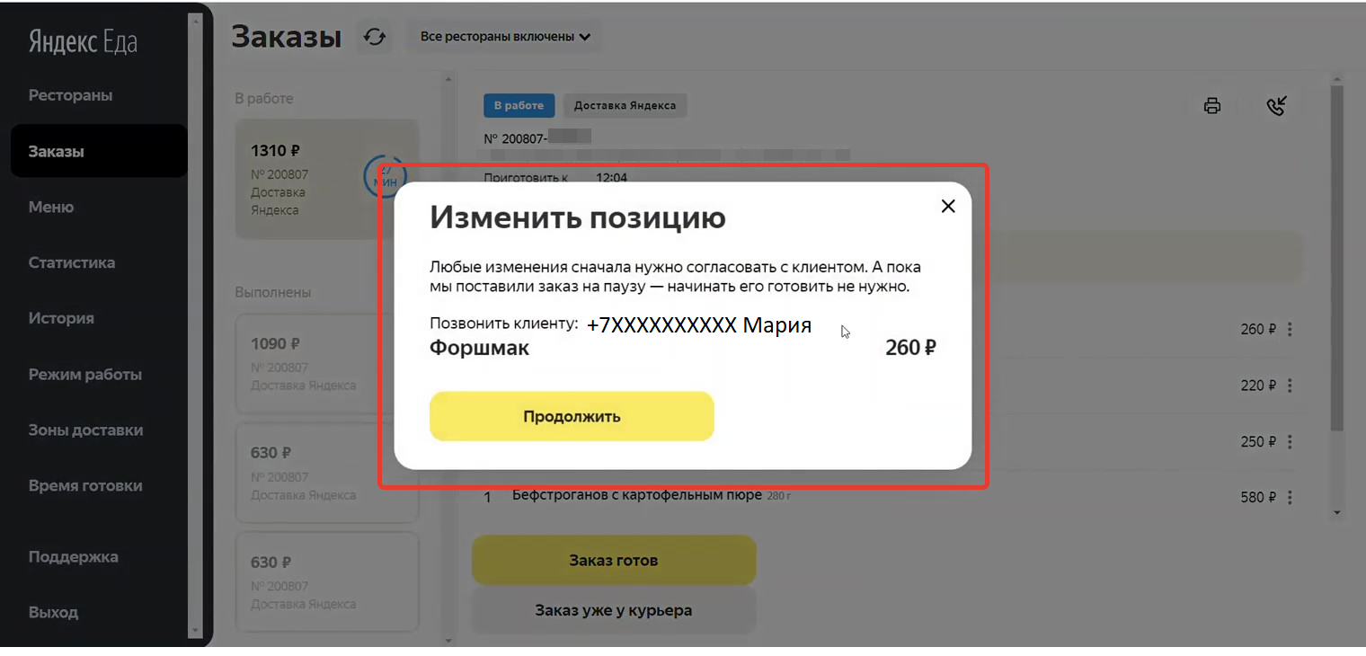 - Здравствуйте, это ресторан [название]. Вы оставили заказ на сайте Yandex Eats: [позиция 1], [позиция 2], [позиция 3]. Все верно?