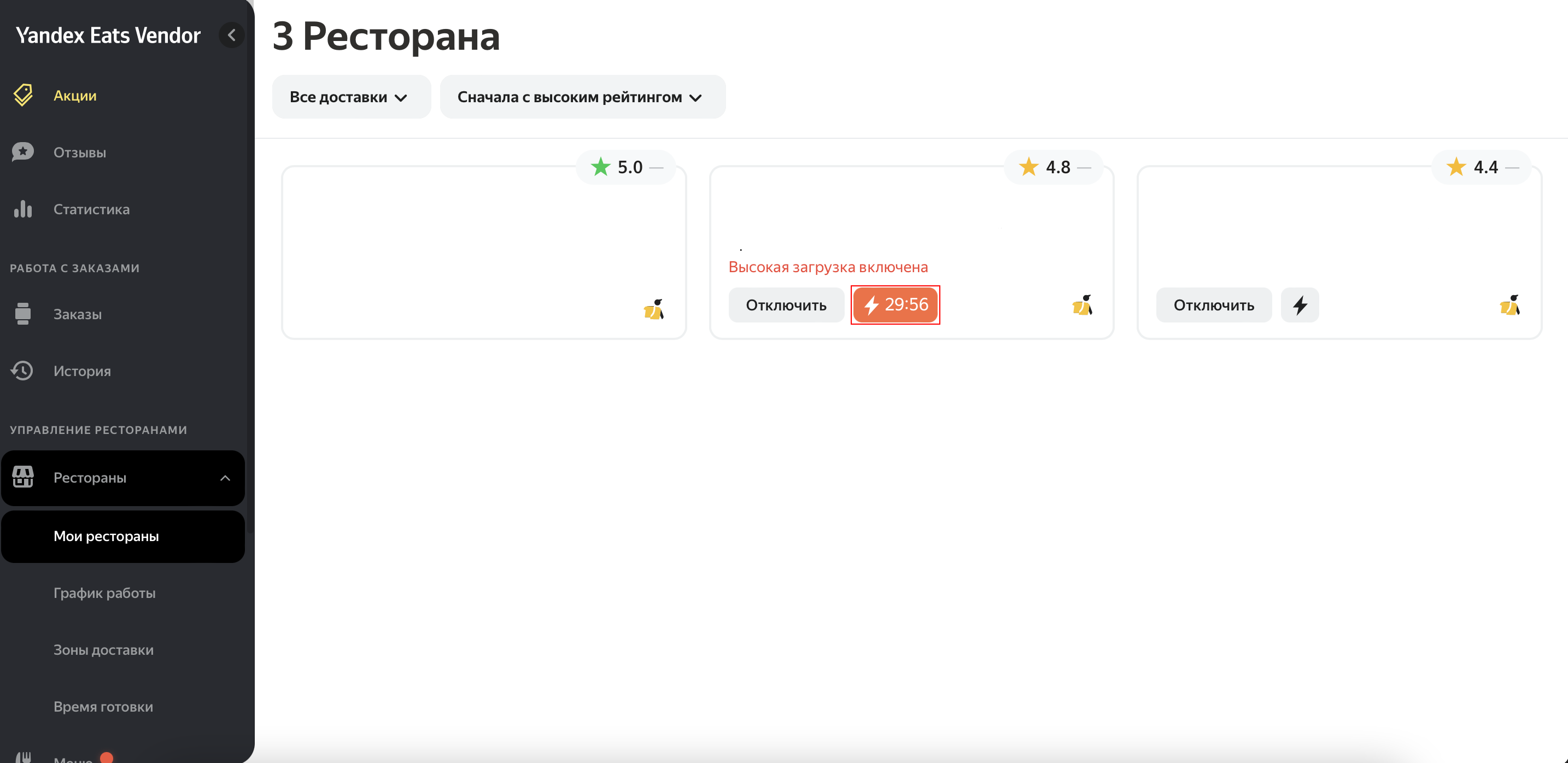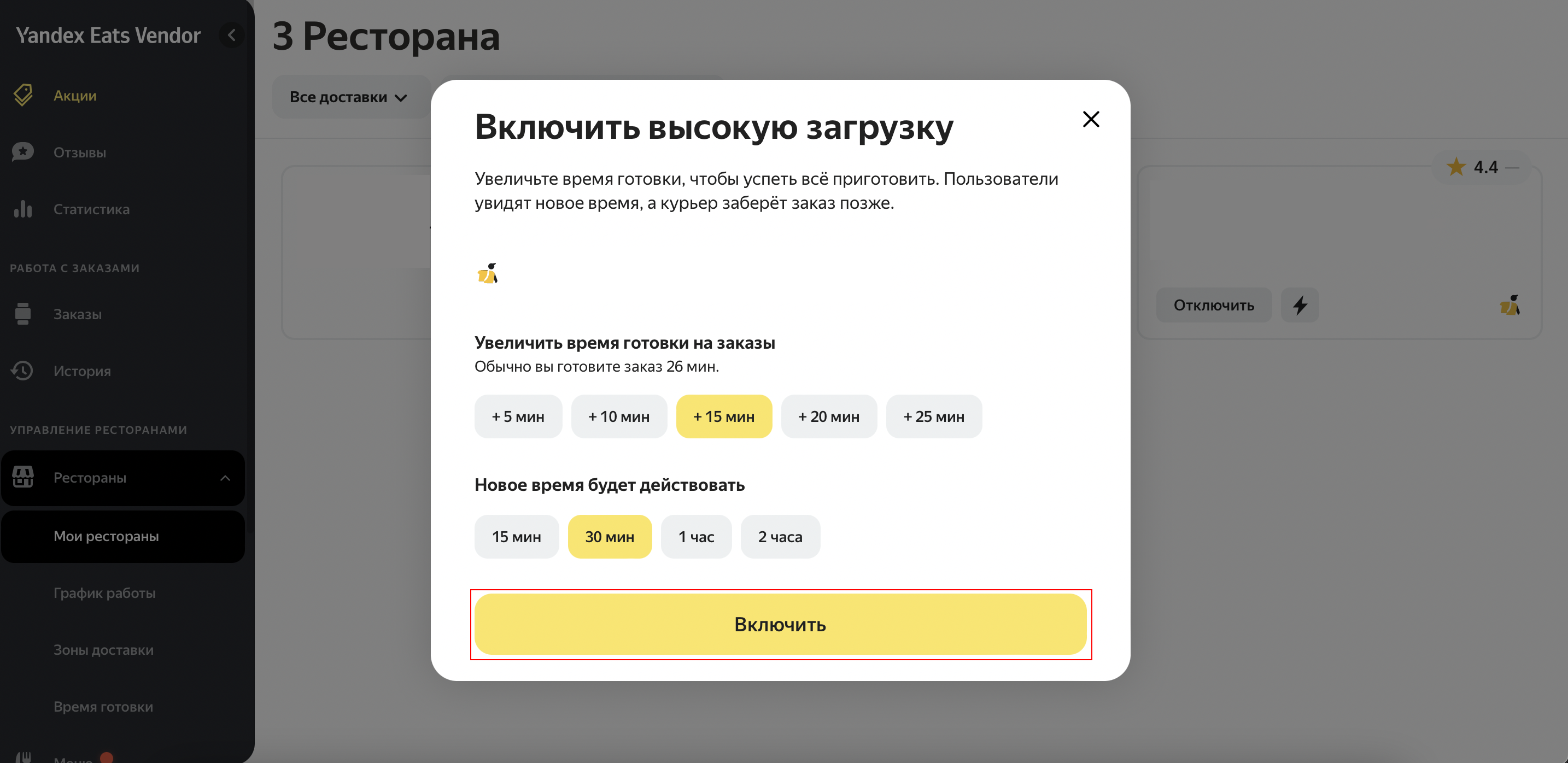 Если не успеваете готовить заказы, включайте режим высокой загрузки.