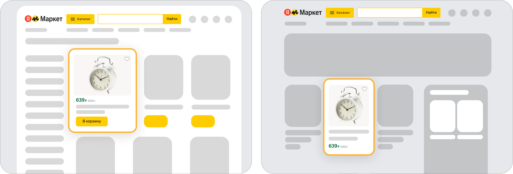 Результаты поиска на Маркете, на страницах категорий и в ленте на главной Маркета