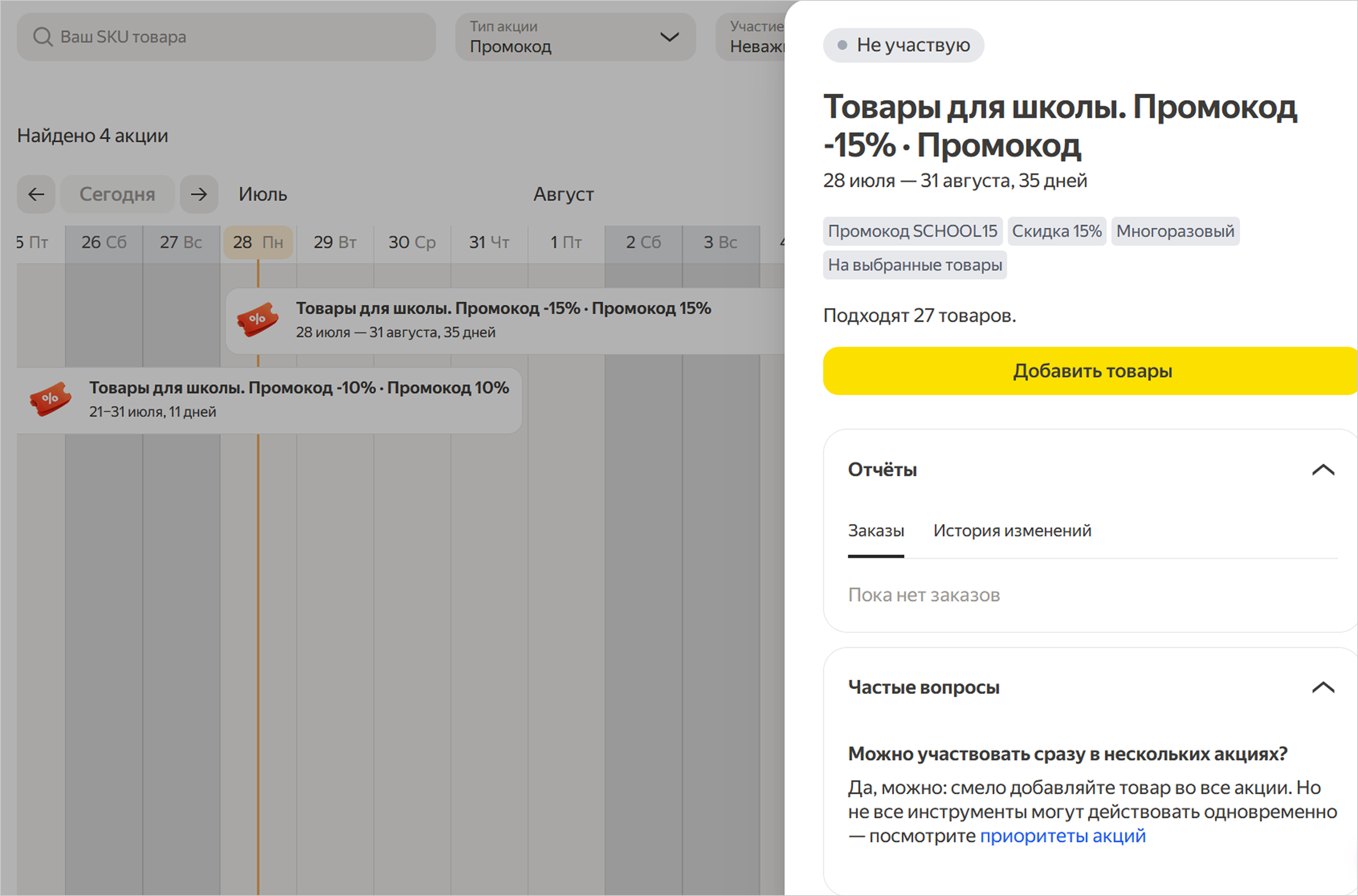 Можно ли добавлять товар одновременно в акцию с промокодом и другие акции?