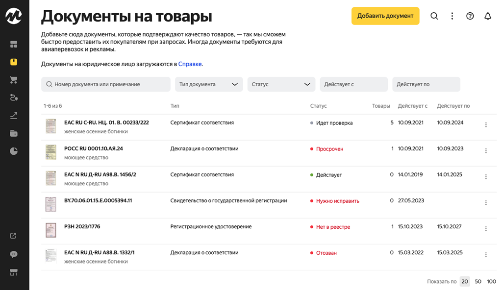 如果文档已过期,请下载新版本:打开旧文档旁边的菜单,然后单击 添加具有相同产品的文档 -Yandex的。市场将复制链接产品列表,您不必手动选择它们。