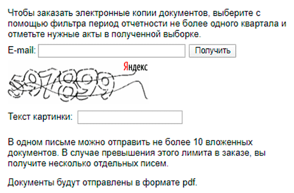 - В блоке вверху справа введите адрес электронной почты и текст картинки. Пример: