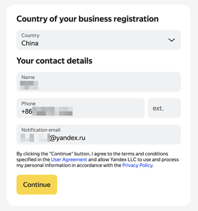 请提供您的详细信息:注册国家,姓名,电话号码和电子邮件地址.