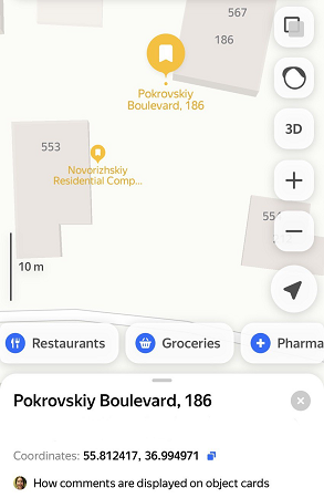 Your comment will appear in the object card. Besides you, no one will be able to see it. If you share the saved places list with other users, they will be able to see the comment too.