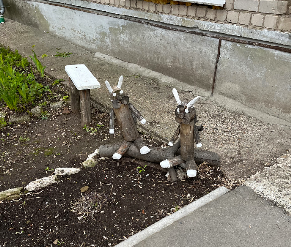 - Various decorative artworks (panels, mosaics, bas-reliefs) and thematic elements meant to beautify the surrounding space. Examples include decorative signs, flower clocks, topiary sculptures, personalized flowerbeds, art objects, and decorative engravings.