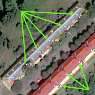 If an address is not assigned to the entire building, but rather to each of its individual entrances (such as in Kaliningrad), then all address points should be located on the line that runs parallel to the longest side of the building: