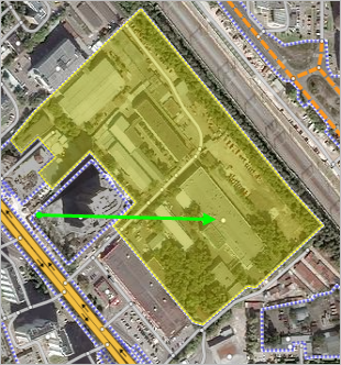If one address is linked to several buildings in an industrial zone, then place the address point at the main (administrative) building.