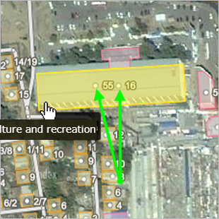 When creating and editing shapes, place address points within the boundaries of buildings based on the actual situation on the ground. If possible, try making sure that the polygon of the building (for which an address point is being created or edited) matches the shape of the building on the ground.