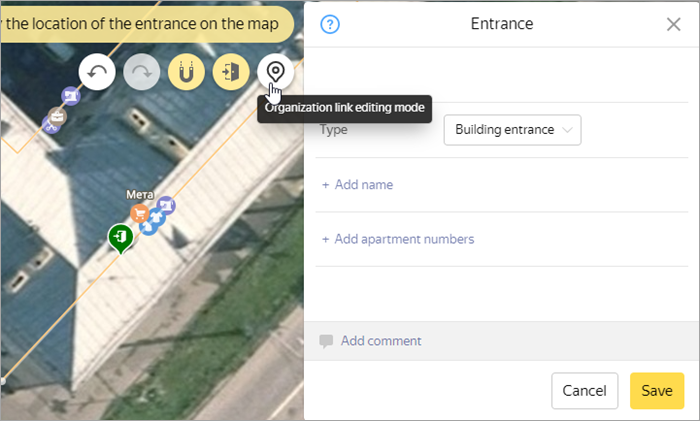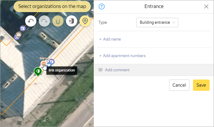 3.4.3.5. Adding an entrance to a building and linking it to an organization