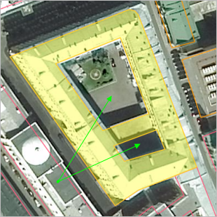 - For example, you should use an internal polygon if you need to draw a courtyard (courtyards are part of the Building item category; there is no separate Courtyard item type on Yandex Map Editor). You would also use an internal polygon if you need to draw a clearing in the woods (clearings belong to the Woodlands category, but there is no Clearing item type on YME).