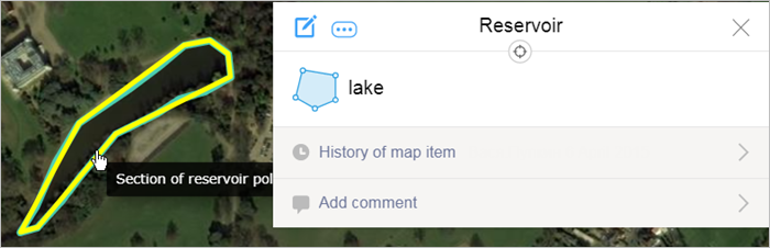 - For example, a reservoir in the woods should not be drawn as a separate Reservoir polygonal item. Otherwise you'll have to draw the body of water twice: as an internal polygon of a woodlands item and as a Body of water hydrography item. When this happens, the borders of the two polygons that represent the same item inevitably don't match, so it doesn't display correctly on the map.