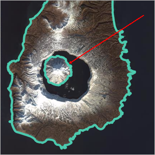 Terrain items located on islands. For example, a volcano on an island can be drawn as a separate terrain item, but it should not be drawn as an internal polygon within an island item.