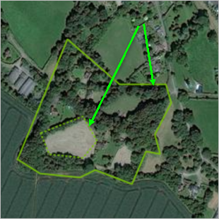 Clearings in woods are drawn as internal polygons within woodlands (the green dotted line in the drawing), but bodies of water within clearings are drawn as separate polygons (highlighted in the drawing):