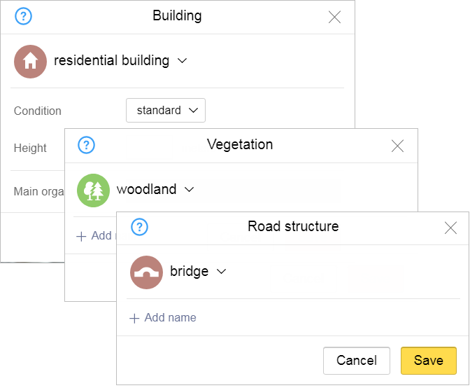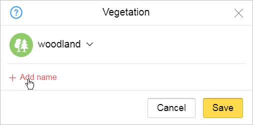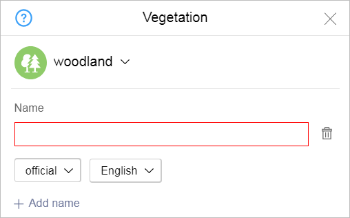 If the item may or may not have a name, then you can add the Name field to the panel if necessary by clicking the Add name link. For example, in the Vegetation