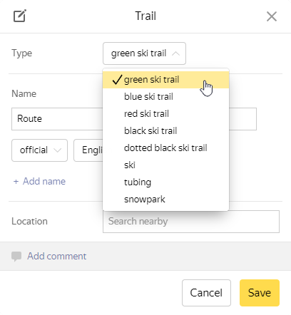 For example, if the official description of a route is Petrovo - Ivanovo, then you can not create separate items for the component roads Petrovo - Sidorovo or Sidorovo-Ivanovo. Such items will be deleted from the map (with the