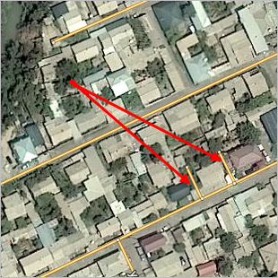 The red arrows in the drawing indicate courtyard passages that you should not include as parts of the road: