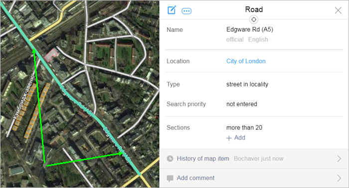 Select the section of the item you want to edit, such as a section of road (motorway, railway, etc.).