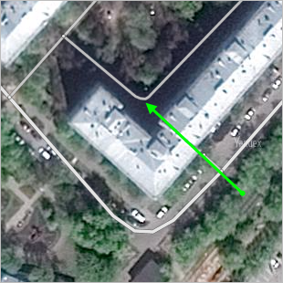 For example, if you draw a road network within a block, it may include a driveway that curves. According to the rule for drawing bends in roads (see3.1.3.3. Drawing turns) a turn is drawn smoothly: