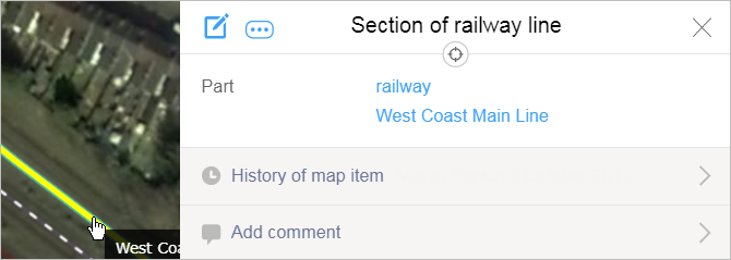 Adding map item attributes: assigning values to attributes (i.e. characteristics) of map items. For example, the type of roadway, name of a locality, or height of a building.