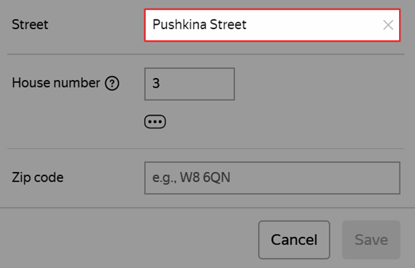To fix the error, write an error report to the moderator. They will add the required street and specify the correct building number. Click Report an error