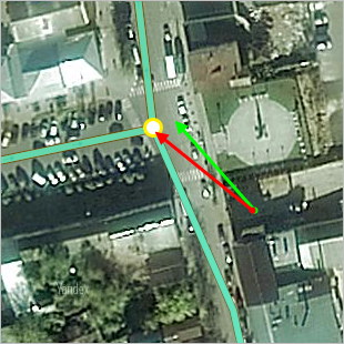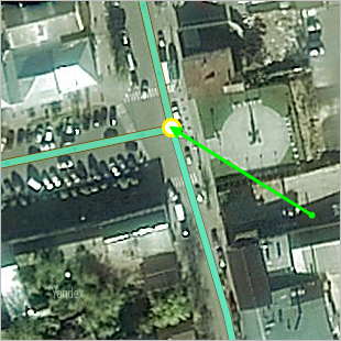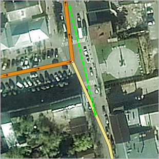 For example, the drawing of a road network doesn't correspond to the real road structure, as the drawing was not accurate enough. The road intersection and adjoining road sections were shifted from their actual positions (green dotted line):