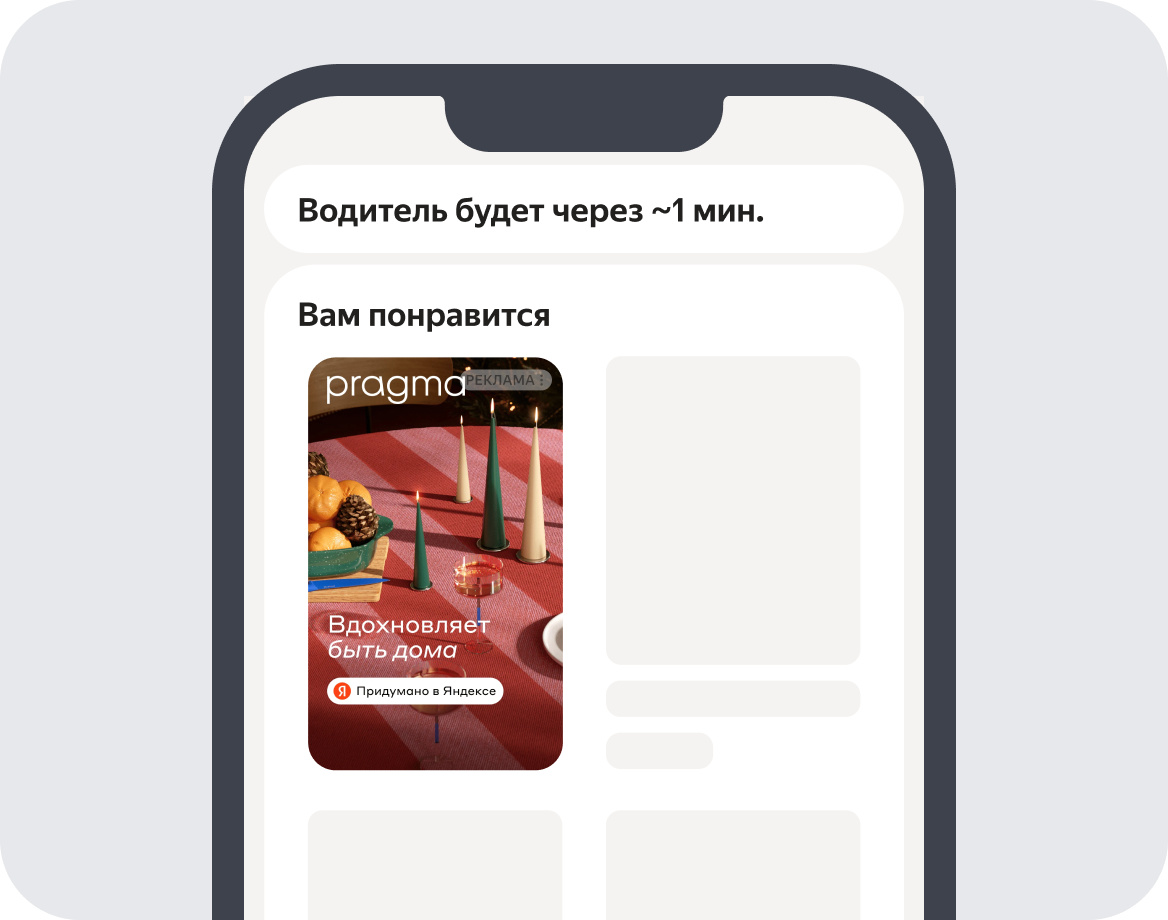На Маркете вы можете настроить и запустить рекламную кампанию с баннером — изображением или видео, которое будет показываться покупателям на страницах сервиса или в других местах — приложениях Яндекс Go, Яндекс Деливери, Яндекс Еда, Яндекс Лавка, Яндекс Доставка, на планшетах в такси.