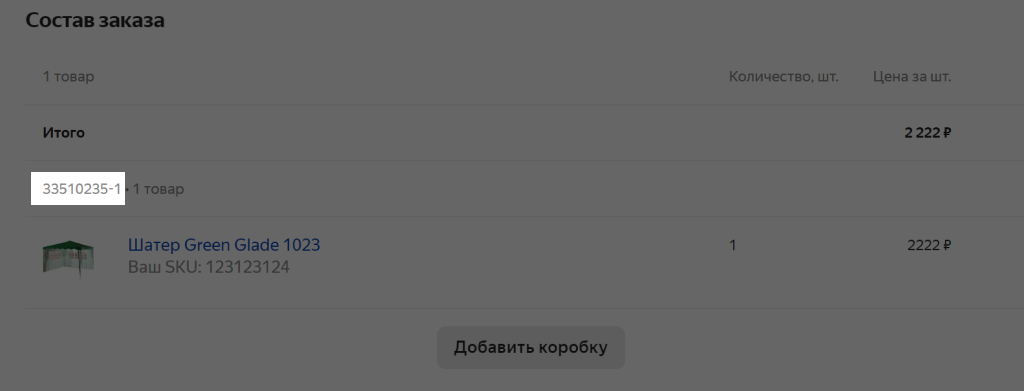 Если вы не видите кнопку Добавить коробку, передавайте число грузомест так же, как передаете его для заказов от физических лиц.