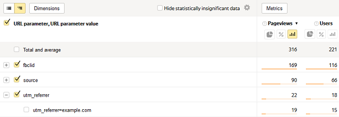 You can use the report to track statistics for additional URL parameters, such as utm_referrer tags, to determine traffic sources more accurately.