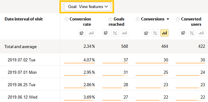 Setting a date range helps determine how much traffic has changed over the specified period. The beginning of such a period may be, for example, the start date of a promotion.