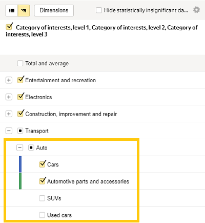 User interests are identified by analyzing their online behavior using the Crypta technology. Because of how this technology is applied, the number of sessions shown in the report might be less than in other reports from the service.