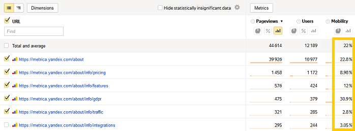 Para hacer esto, haga clic en el botón Métricas y seleccione Movilidad.