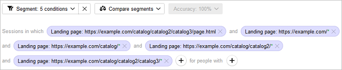 Cuando cambia de informe a informe, las condiciones de segmentación se guardan. Si las condiciones compatibles son diferentes, aparece un mensaje sobre su incompatibilidad en Yandex Metrica. En este caso, elimine las condiciones y establezca un nuevo segmento.