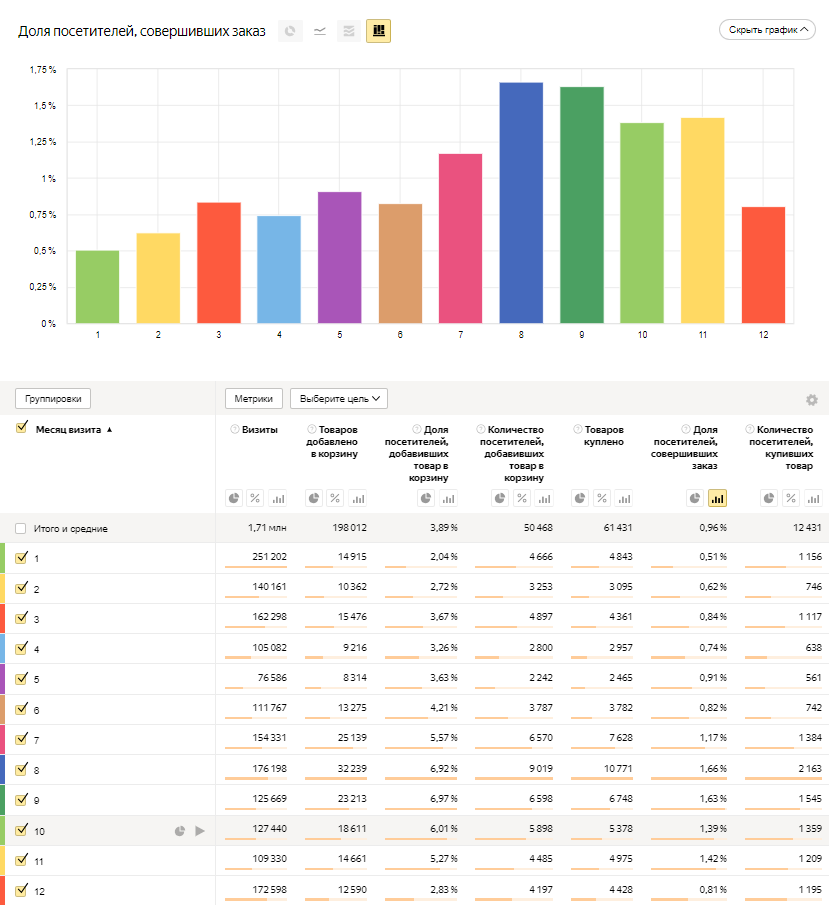El informe admite todas las configuraciones disponibles en Yandex Metrica.