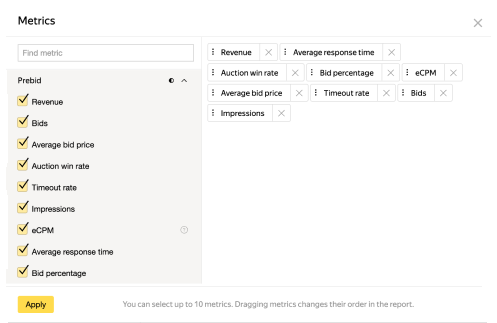 - Inicialice el Adaptador de Análisis de Yandex en la configuración de Prebid.js. Después de eso, los datos comenzarán a fluir hacia Yandex Metrica, y podrá configurar el informe.