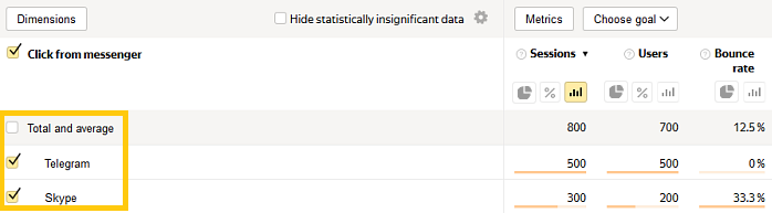 Yandex Metrica recopila datos sobre las siguientes aplicaciones de mensajería: