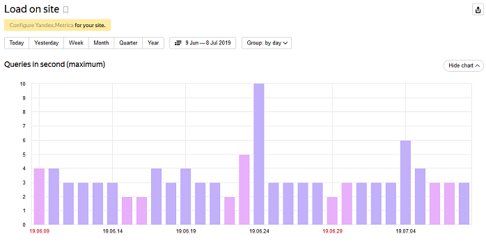 A tabela mostra o número de vezes que a tag Yandex Metrica enviou dados sobre a atividade de robôs no site (exceto o envio de dados da Reprise de Sessão).