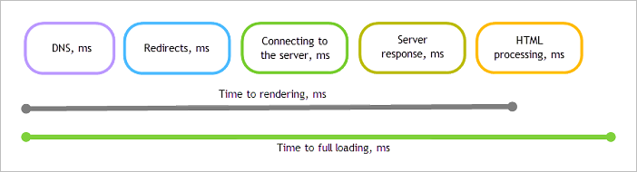 Tempo até renderização: O tempo desde o início do acesso à página até a página começar a ser renderizada no navegador. Este é o valor que os usuários percebem subjetivamente como sendo a velocidade de carregamento do site. Geralmente leva menos de 2 segundos.