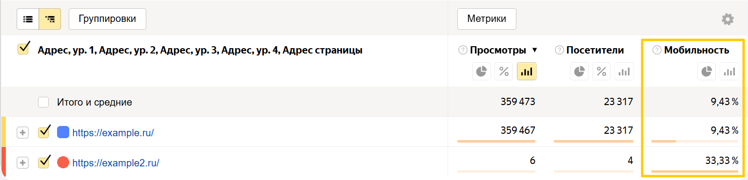 Для этого нажмите кнопку Метрики и выберите Мобильность.