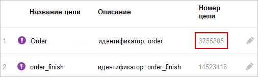 Номер цели. Указывается в том случае, если данное действие и было целью. Номер цели доступен в веб-интерфейсе Яндекс Метрики, в разделе Настройка (вкладка Цели). |